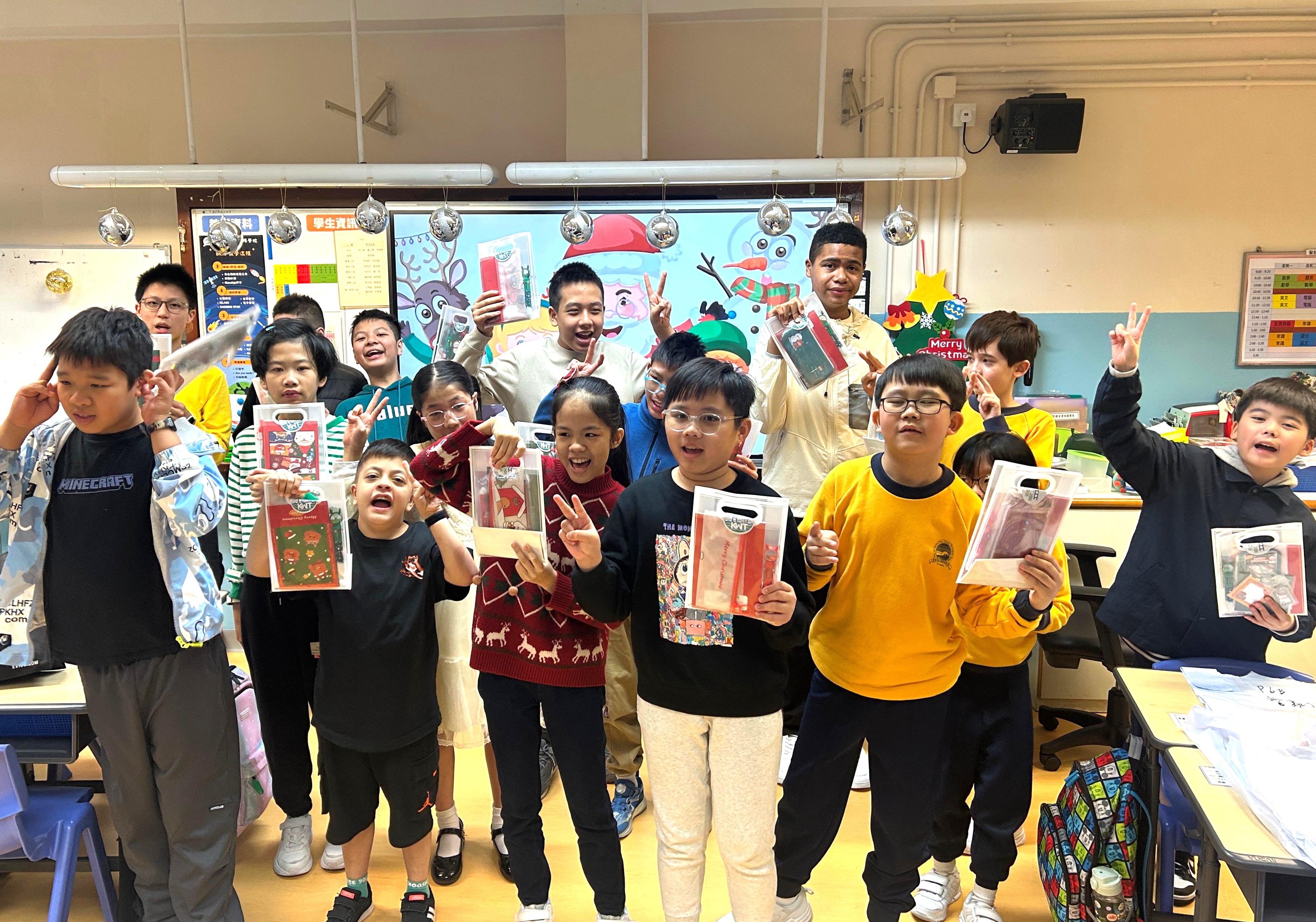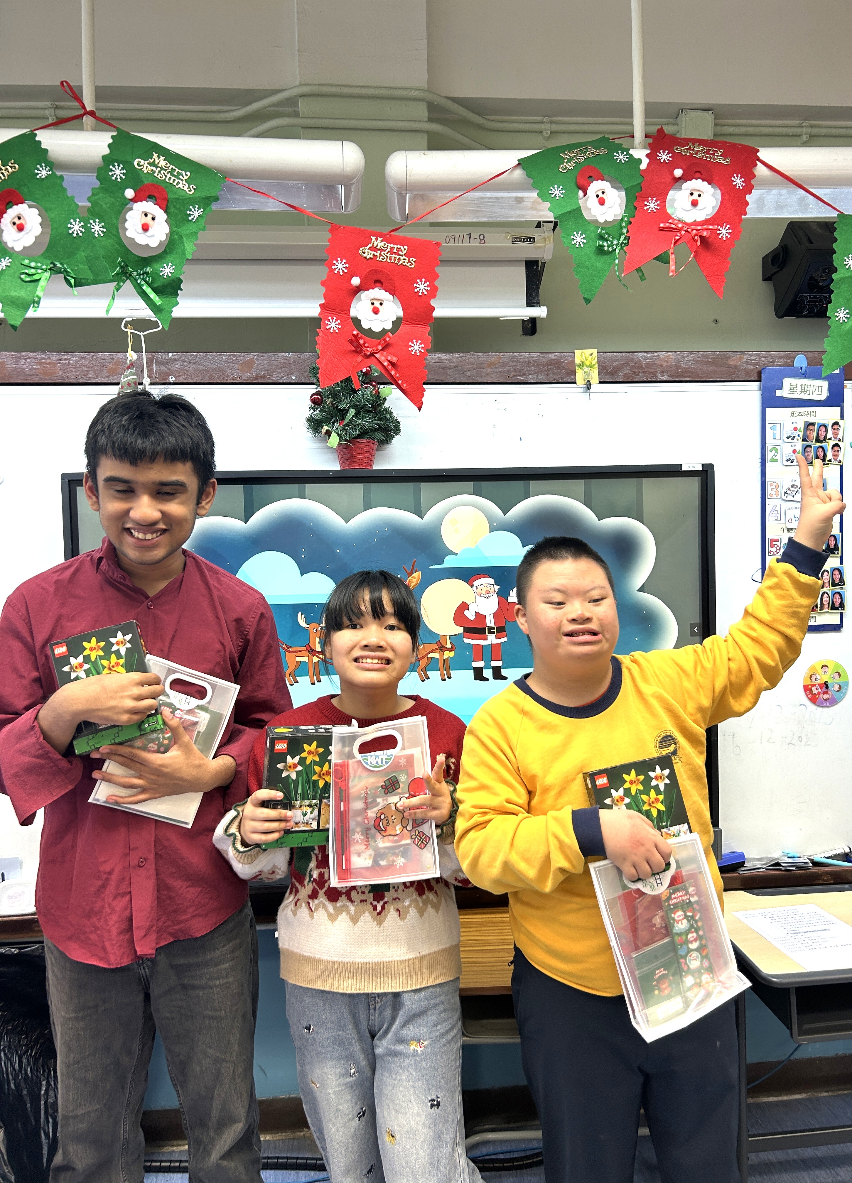 同學積極參與班本聖誕感恩遊戲,聖誕老人也來到班級,為學生帶來了驚喜的禮物。活動特設的木地台拍攝環節,讓學生們能夠留影,分享這些美好的瞬間。