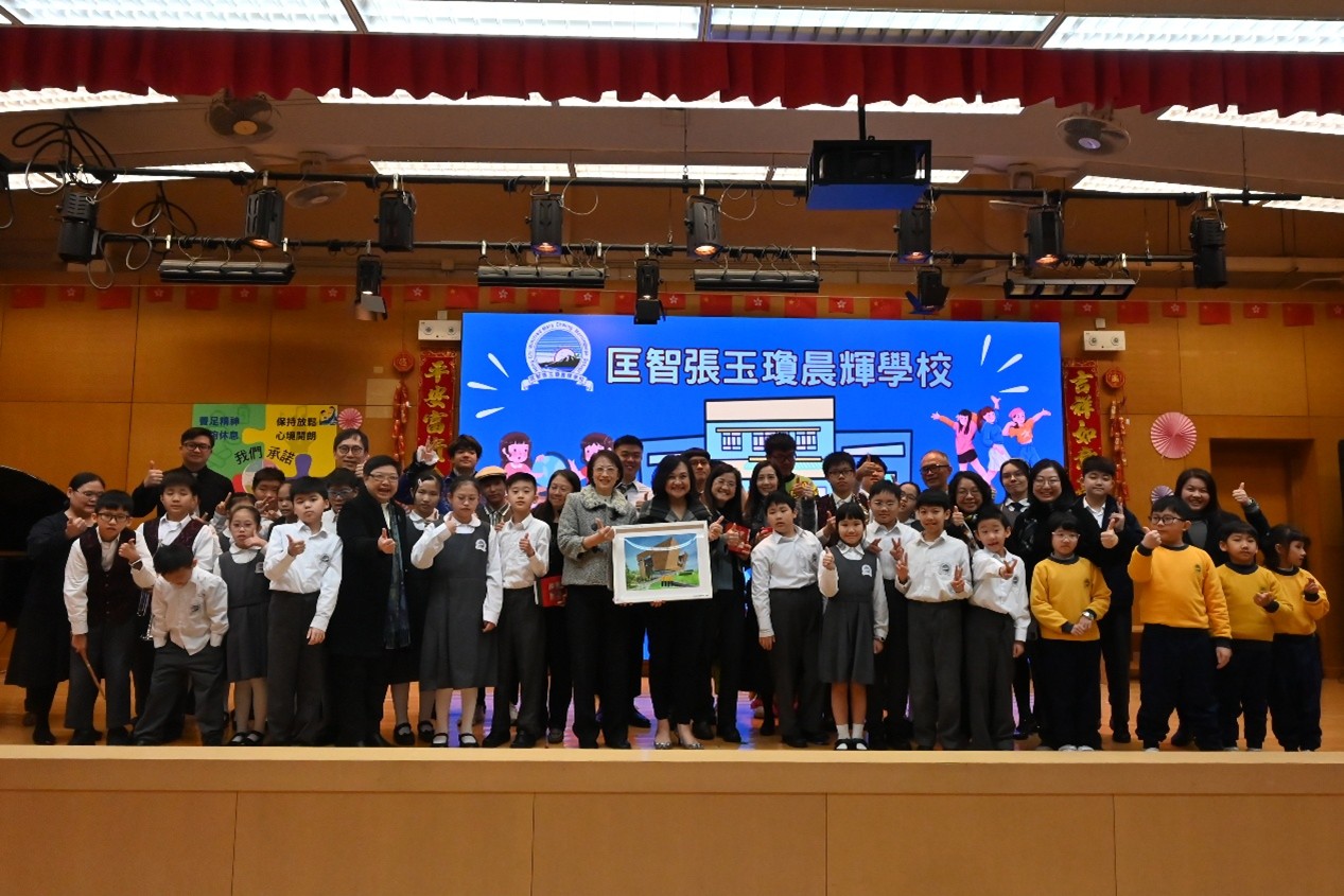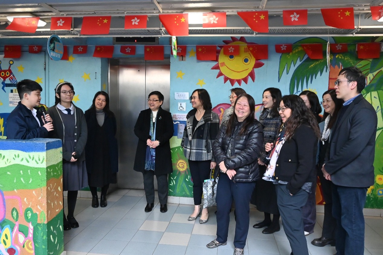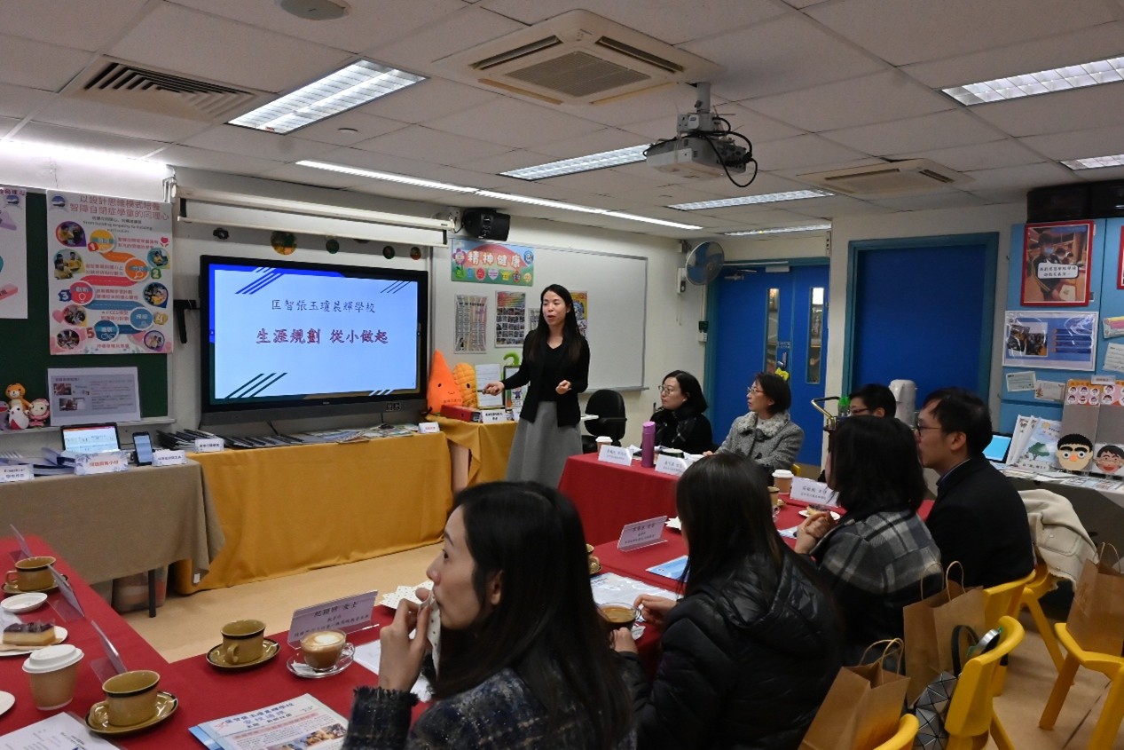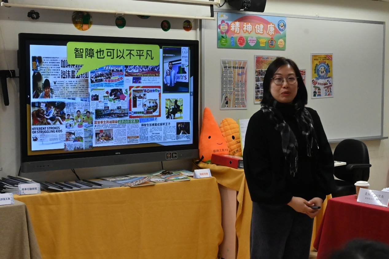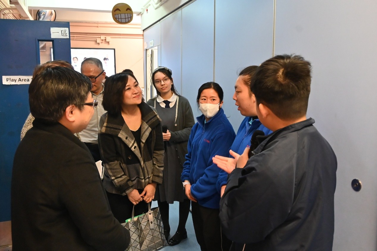 本校於 1 月 22 日上午有幸接待教育局首席助理秘書長(特殊教育)李慧冰女士,以及教育局特殊教育分部首席教育主任李何淑華女士、特殊教育支援第一組高級教育主任紀穎妍女士和特殊教育支援第二組首席督學楊家韋先生蒞臨參訪。校長及教職員向來賓簡介學校的辦學理念與特色發展,包括生涯規劃教育、價值觀教育、創新科技與新科技於學與教的應用,以及精神健康教育的實踐策略,並安排嘉賓參觀校園、觀課及欣賞學生表演,讓教育局同工深入了解本校的教與學成果。