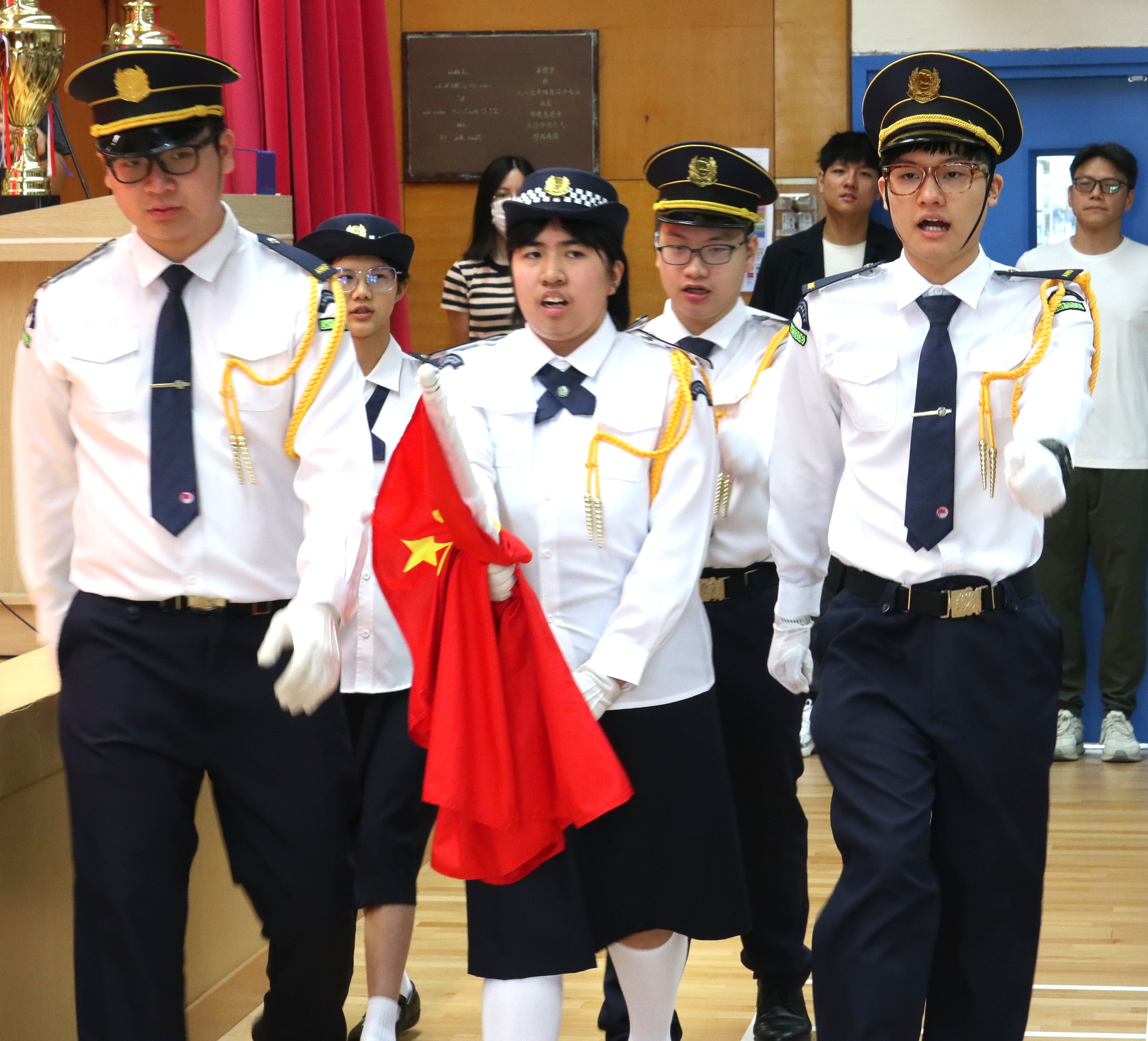 當天早上,全體師生齊集禮堂,參加莊嚴的升旗儀式。隨後的國旗下講話以說出愛國主義精神的重要性,並勉勵同學珍惜當下、勤奮學習,以實際行動回饋社會。
